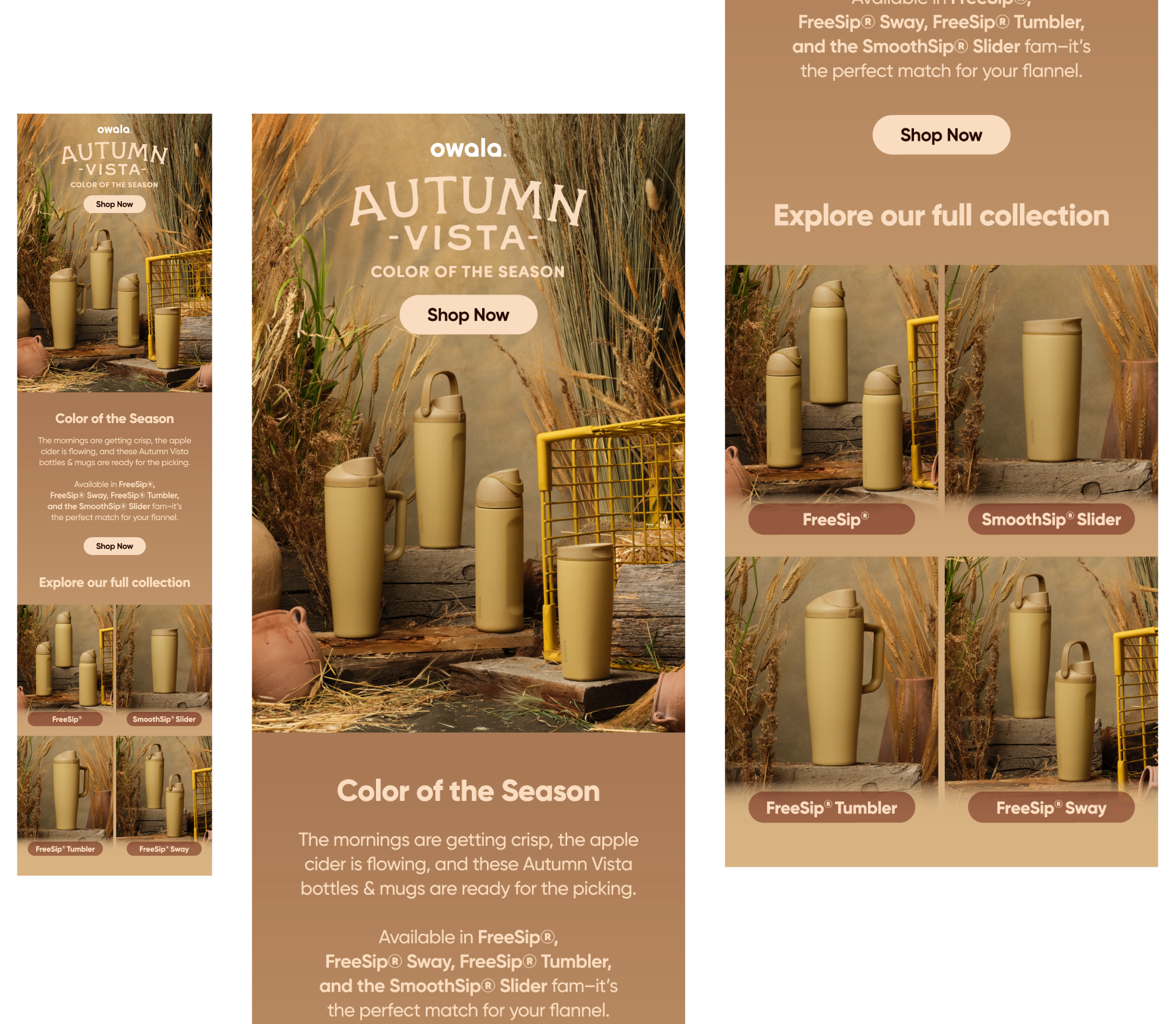 For our Color of the Season – Autumn Vista special edition bottle, we needed to visually define fall within the larger seasonal campaign. The mustard colorway had to feel rich and desirable while clearly tying into the overarching “shopping cart” concept used across the Spring and Summer launches. The creative also needed to feel cohesive with previous seasonal shoots while introducing a fresh fall perspective. Additionally, we needed both a primary look and a contrasting B-version for testing and placement flexibility.